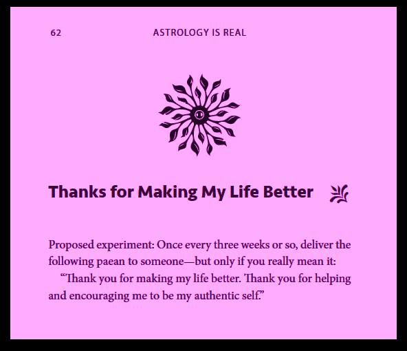 "Just opened the Kindle version of ASTROLOGY IS REAL, clicked on a random title on the contents page and there was a startling, instant oracle. I sat up a little straighter, did it again, and again — and again. I had to come back to this page and say thank you.