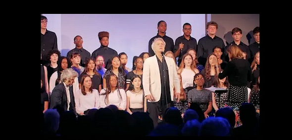 David Byrne performs his ”Hymn of Optimism and Countercultural Anthem of Resistance and Resilience” with the Brooklyn Youth Chorus.